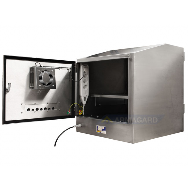 الخزانة لديها تصنيف IP65 لتوفير حماية للماء موثوقة لجهاز الكمبيوتر الخاص بك. العلبة تحتوي على مراوح للتهوية، وحماية من الطفرة التي تحمي جهاز الكمبيوتر من المسامير الكهربائية. على هذا النحو، فإن الكمبيوتر يعمل بشكل موثوق في مجموعة من الظروف، مما يقلل من الأعطال وتكاليف الإصلاح، ويضمن أن بيسي سوف يكون لها حياة طويلة. الفولاذ المقاوم للصدأ بيسي الضميمة يوفر عائد ممتاز على الاستثمار.