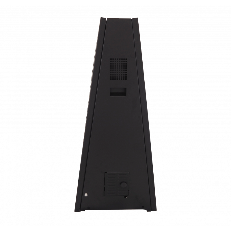 The unit has braked castor wheels, which make it easy to move into the most visible position at any time. Locks on the wheels allow you to leave it securely in public areas, and locks on the enclosure protect the screens.