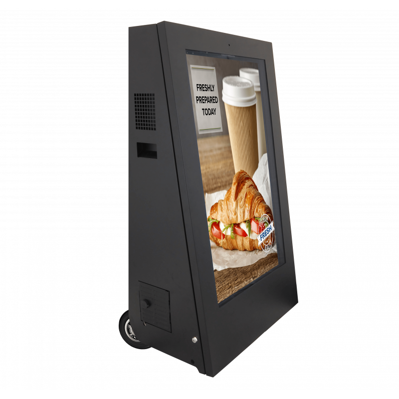 디스플레이는 최적의 위치로 이동하기 쉽고 배터리는 최대 14 시간의 광고를 제공합니다. 43 인치 화면은 비즈니스의 가시성을 높이고 매출을 높이는 데 도움이됩니다.
