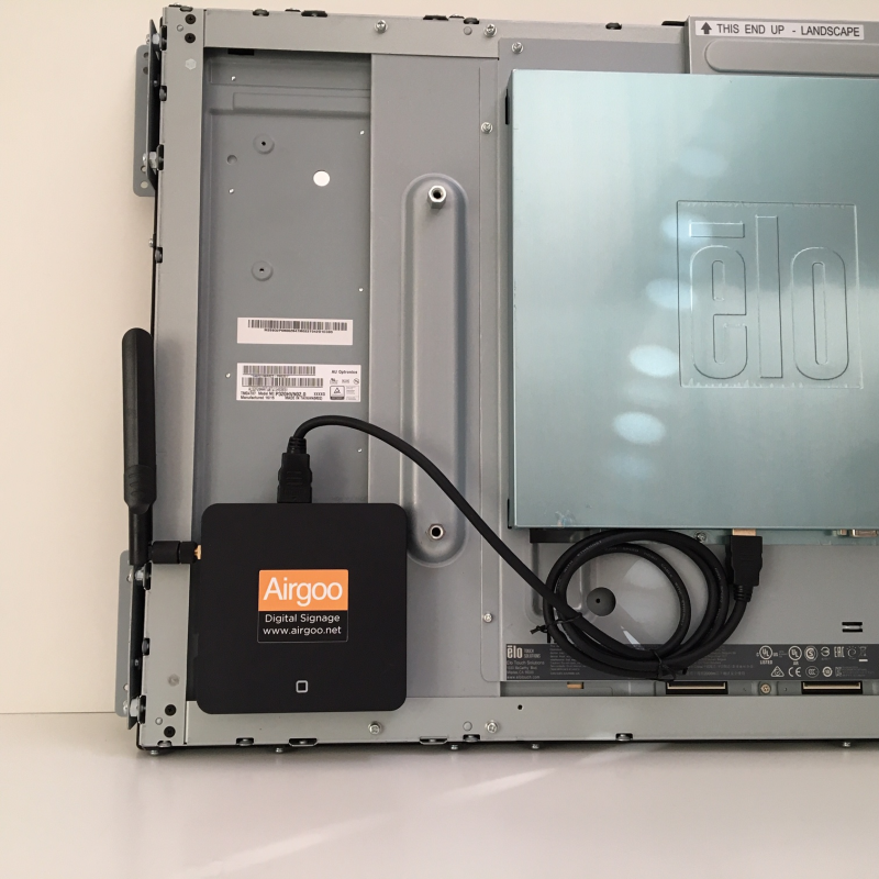 Sambungkan MiniPlayer V4 ke TV melalui HDMI dan ke internet melalui WiFi atau Ethernet. Pemain menyambung secara automatik ke akaun Airgoo anda untuk memaparkan kandungan anda di skrin.