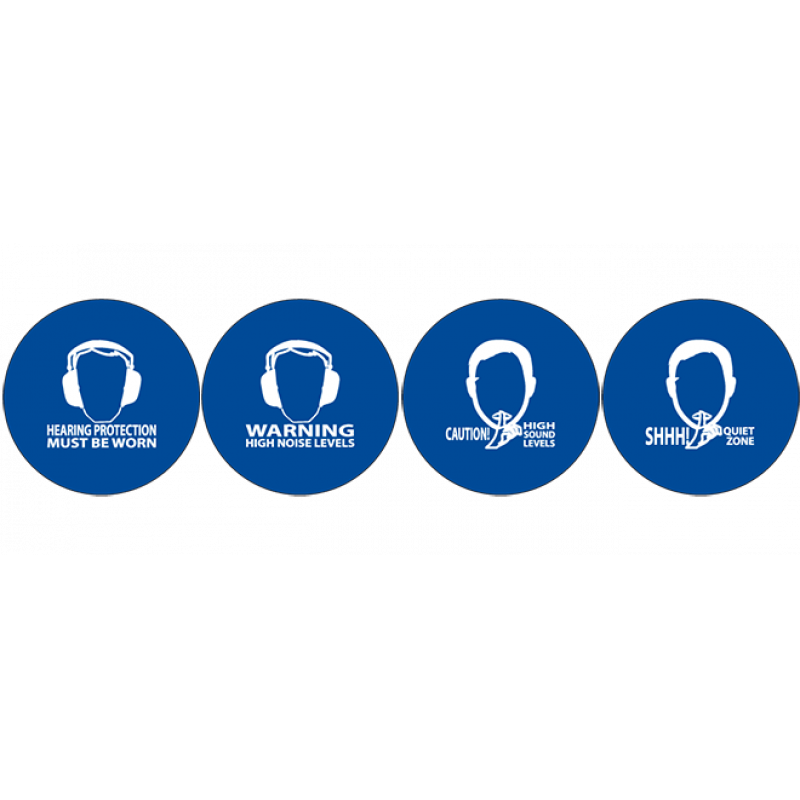 De "gehoorbescherming moet gedragen worden" is geschikt in gebieden waar gehoorbescherming moet worden gedragen. "waarschuwing! hoge geluidsniveaus "is geschikt in luidruchtige gebieden waar gehoorbescherming niet nodig is.