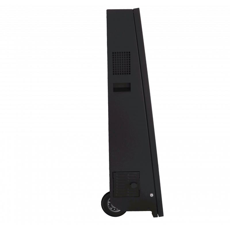 As rodas com trava permitem que você mova a unidade para o local mais visível. A bateria oferece um dia inteiro de publicidade e a tela de alta definição de 43 polegadas atrai os clientes com suas promoções.