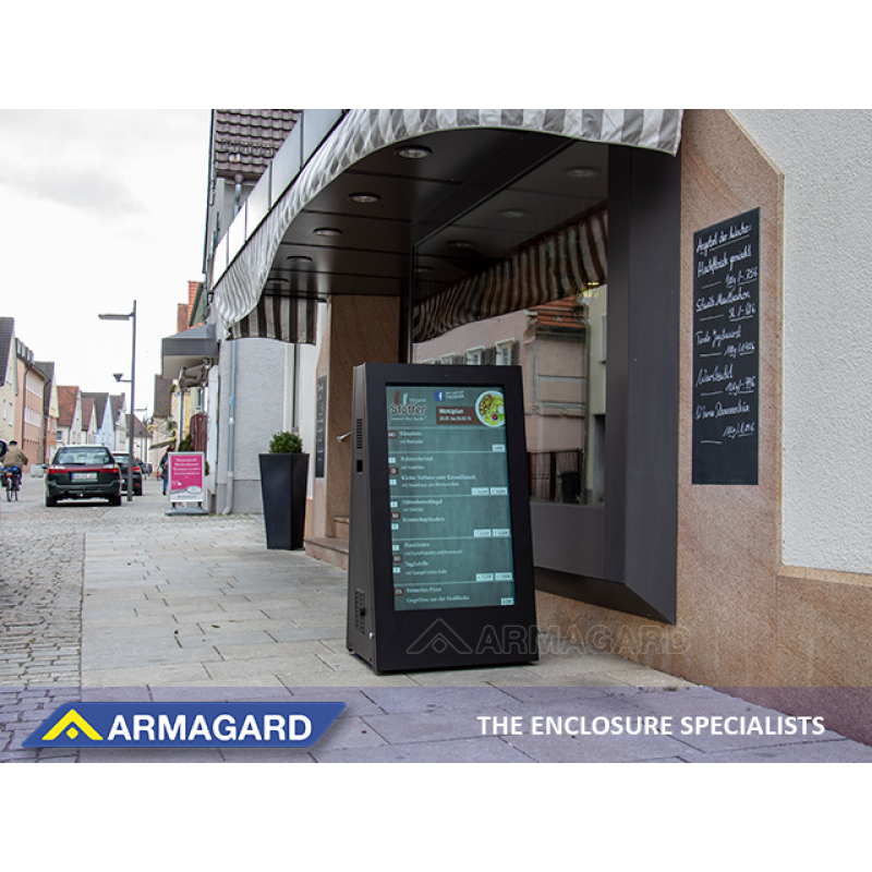 Stålhölje med nyckeldrivna lås | Skärmen är skyddad från vandalism och stöld. |