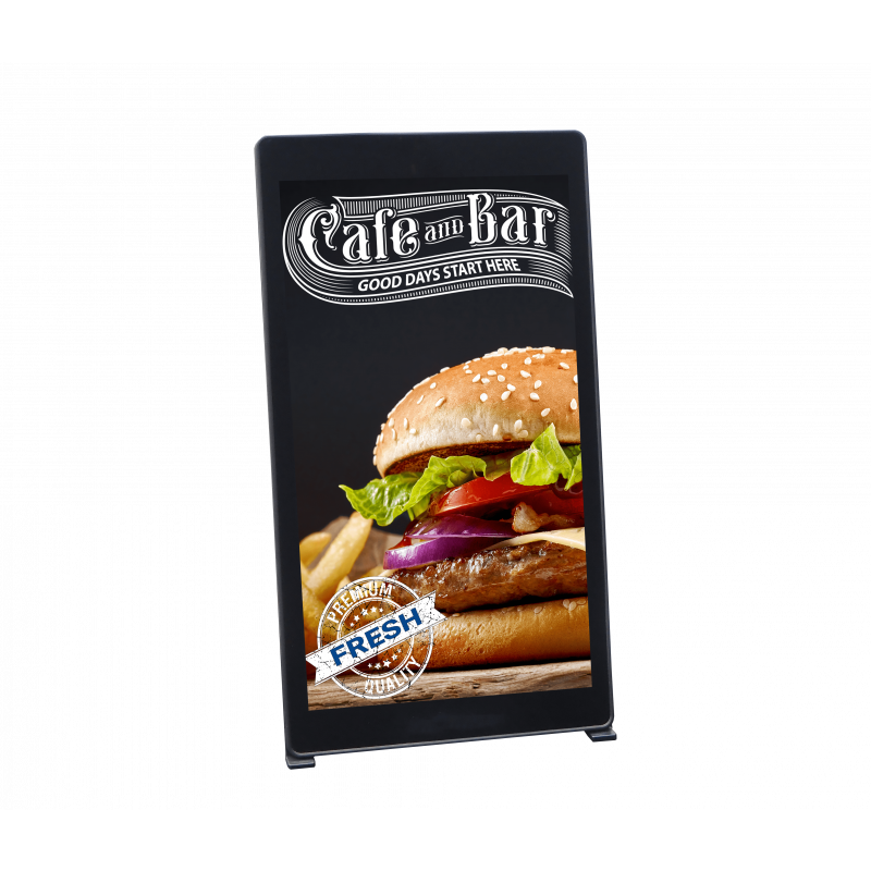 Müşterileri çekmek ve satışları artırmak için bağlantısız dijital A-frame tabela kullanın. 39 inç ekran yaya konumlarında dikkat çekiyor.